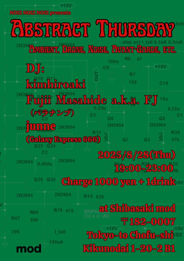 8/28に柴崎modで開催されたAbstract Thursdayの第2回。自分のセットリストはこんな感じでした。