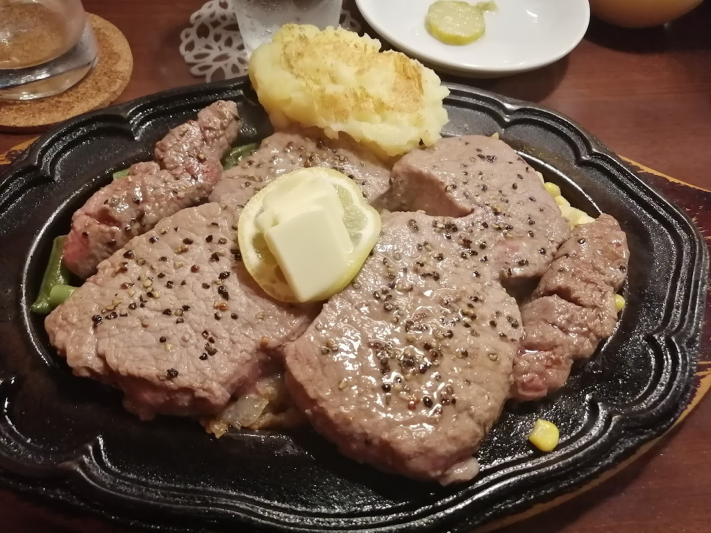 妻とステーキハウスKYOYA。二人とも400gをオーダー。ちょうどいい。というかもうちょっと欲しいかも。次回はぼくが500g頼んで少し妻に分けるという作戦を立てる