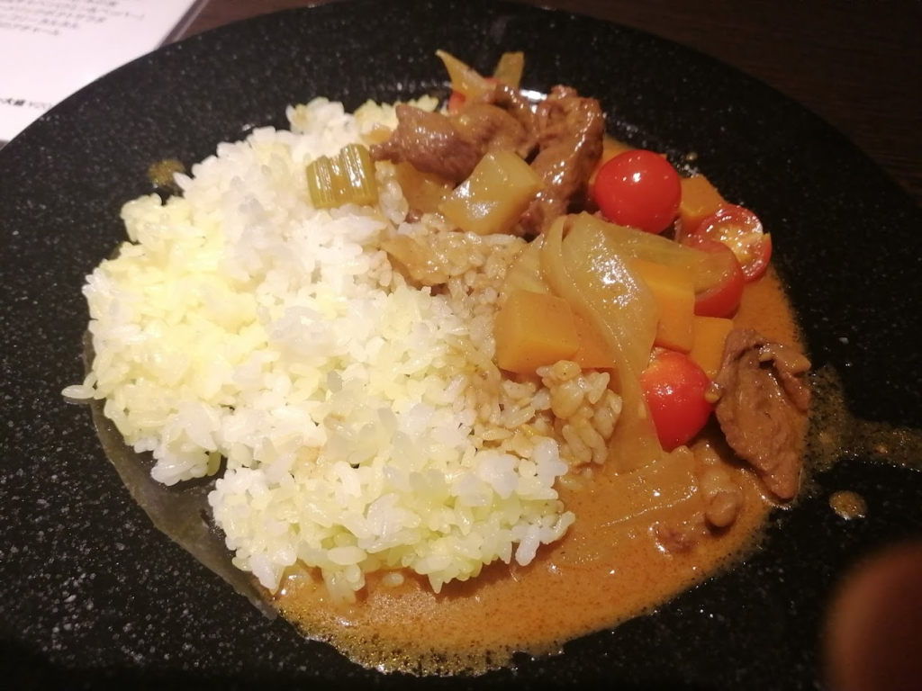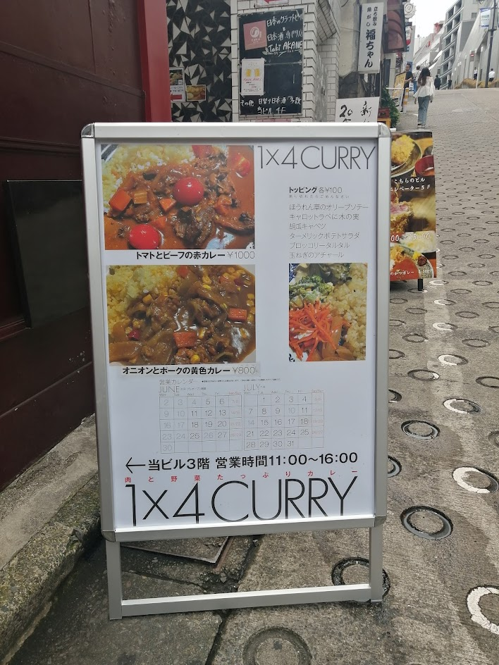 マークシティ横で友人の配偶者がランチタイムに間借りカレーを始めたというので行ってみる。居酒屋「いこい」のあるビルの中で「1x4CURRY」というお店。赤カレーをいただく。うまい!
