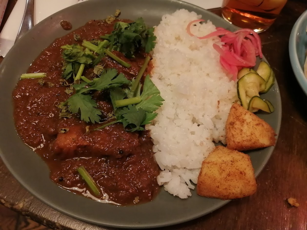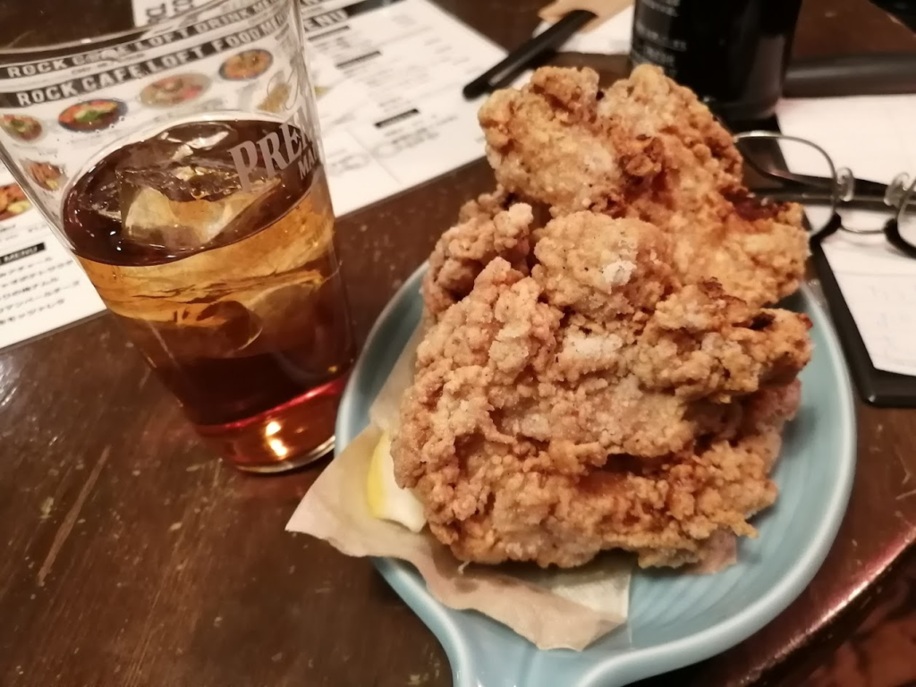 夕食をどうしようかなと迷ったのだが、けっきょくRock Cafe Loftで食べることにしてオープンを待ち入場。ポークカレーハーフ唐揚げハーフをいただく。うまし