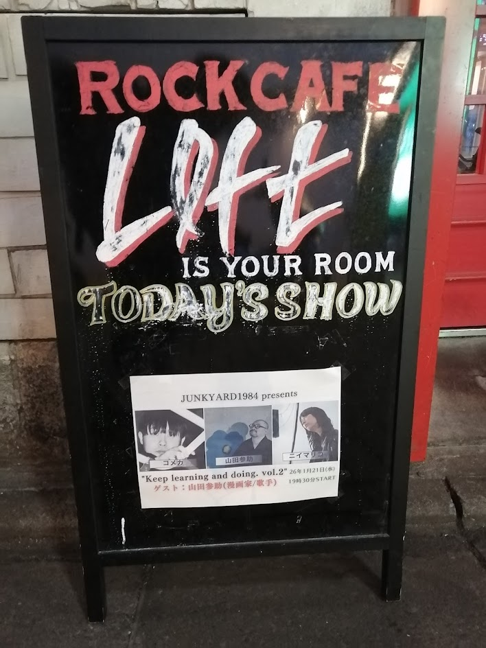 ニイマリコさんコメカさんのトークユニット「JUNKYARD 1984」のイベントで、漫画家であり、バンド「泊」のヴォーカリストでもある山田参助さんがゲスト。
